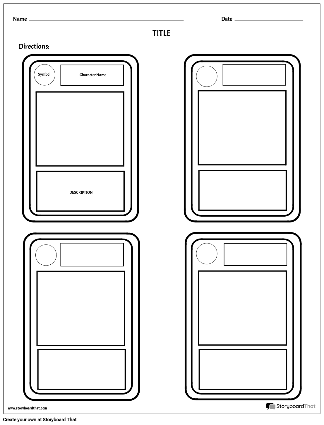Șablon de cărți de schimb de caractere | idei de proiecte