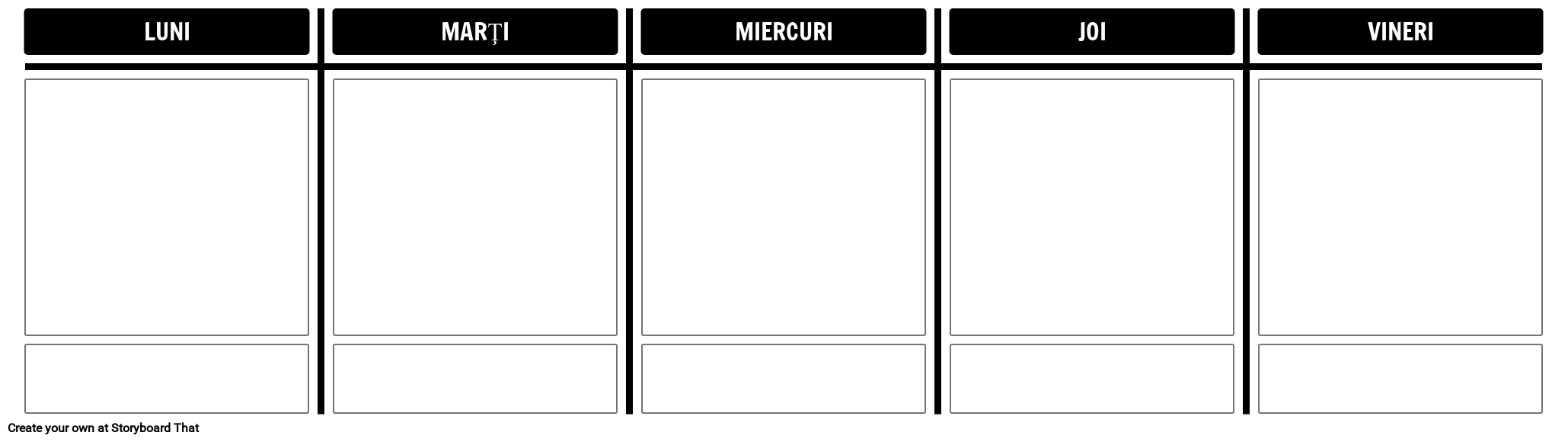 Șablonul de luni până vineri folosind aspectul T-Chart. Adăugați încă două celule pentru o săptămână întreagă!