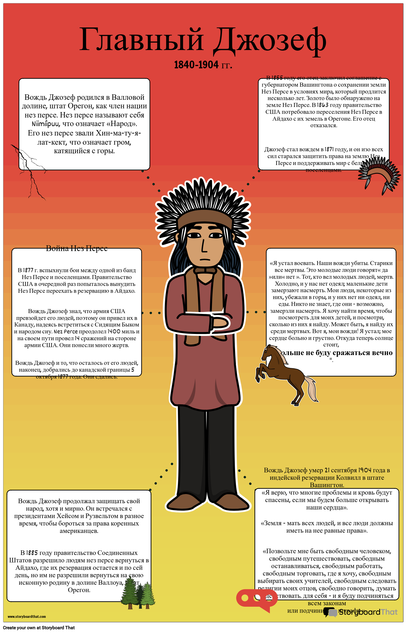 Создайте плакат с биографией, посвященный жизни и наследию коренных жителей плато Американского континента!