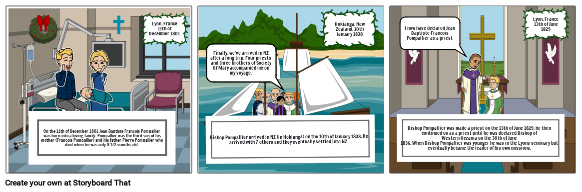 Bishop Pompallier was made a priest on the 13th of June 1829, he then continued on as a priest until he was declared Bishop of Western Oceania on the 30th of June 1836. When Bishop Pompallier was younger he was in the Lyons seminary but eventually became the leader of his own missions.