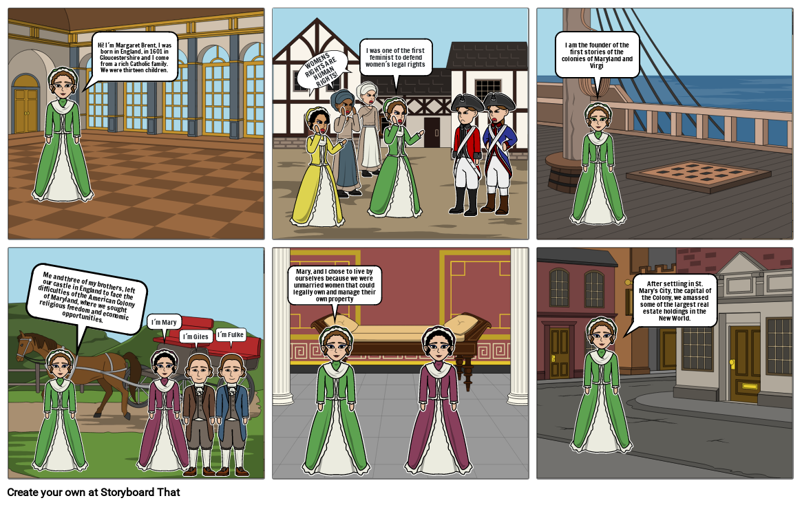 Hi! I´m Margaret Brent, I was born in England, in 1601 in Gloucestershire and I come from a rich Catholic family. We were thirteen children.