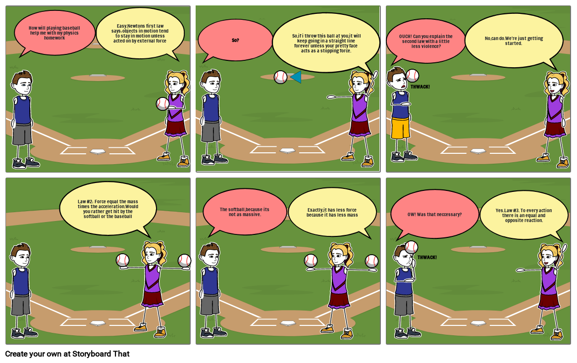 Law #2: Force equal the mass times the acceleration.Would you rather get hit by the softball or the baseball
