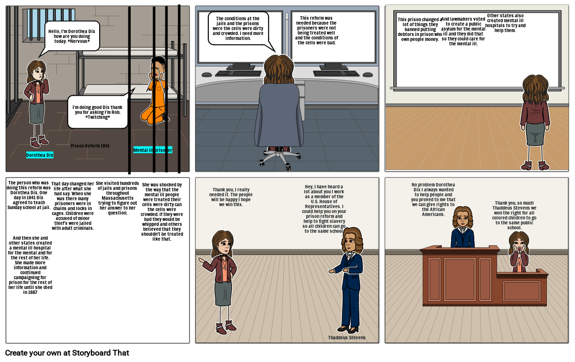 The person who was doing this reform was Dorothea Dix. One day in 1841 Dix agreed to teach Sunday school at jail.