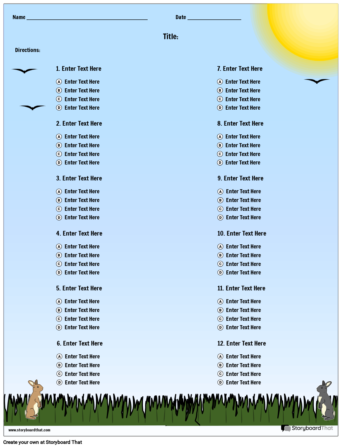 बहुविकल्पी 12 प्रश्न आउटडोर विषय