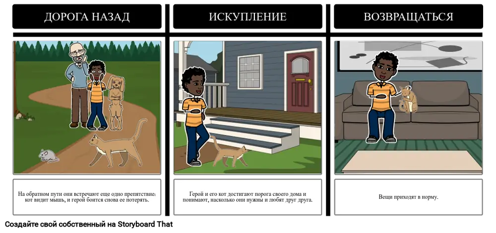 Герой и его кот достигают порога своего дома и понимают, насколько они нужны и любят друг друга.