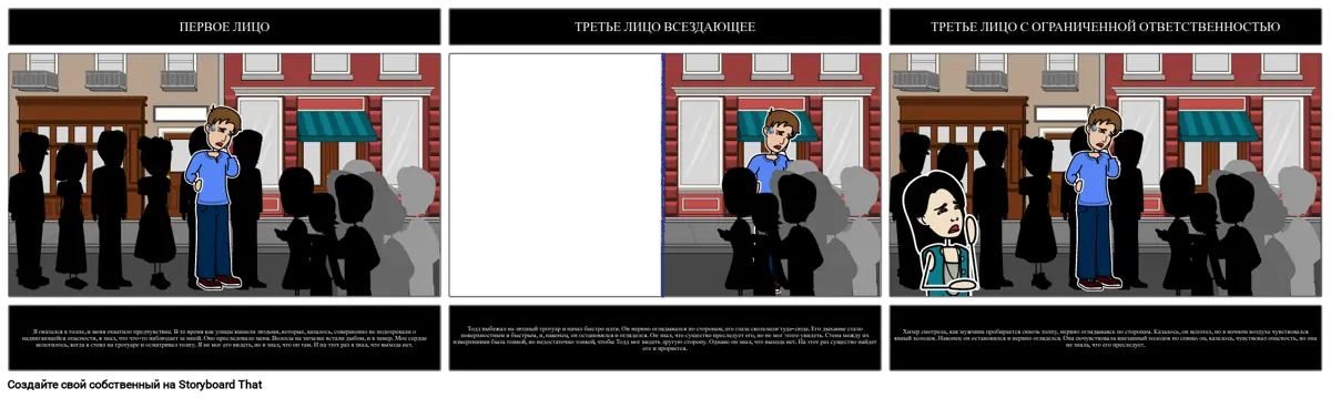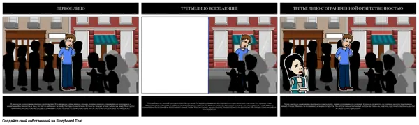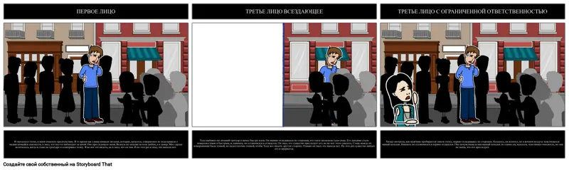 Пример задания «Точка зрения»: различные типы повествования, например, всеведущее повествование от третьего лица.