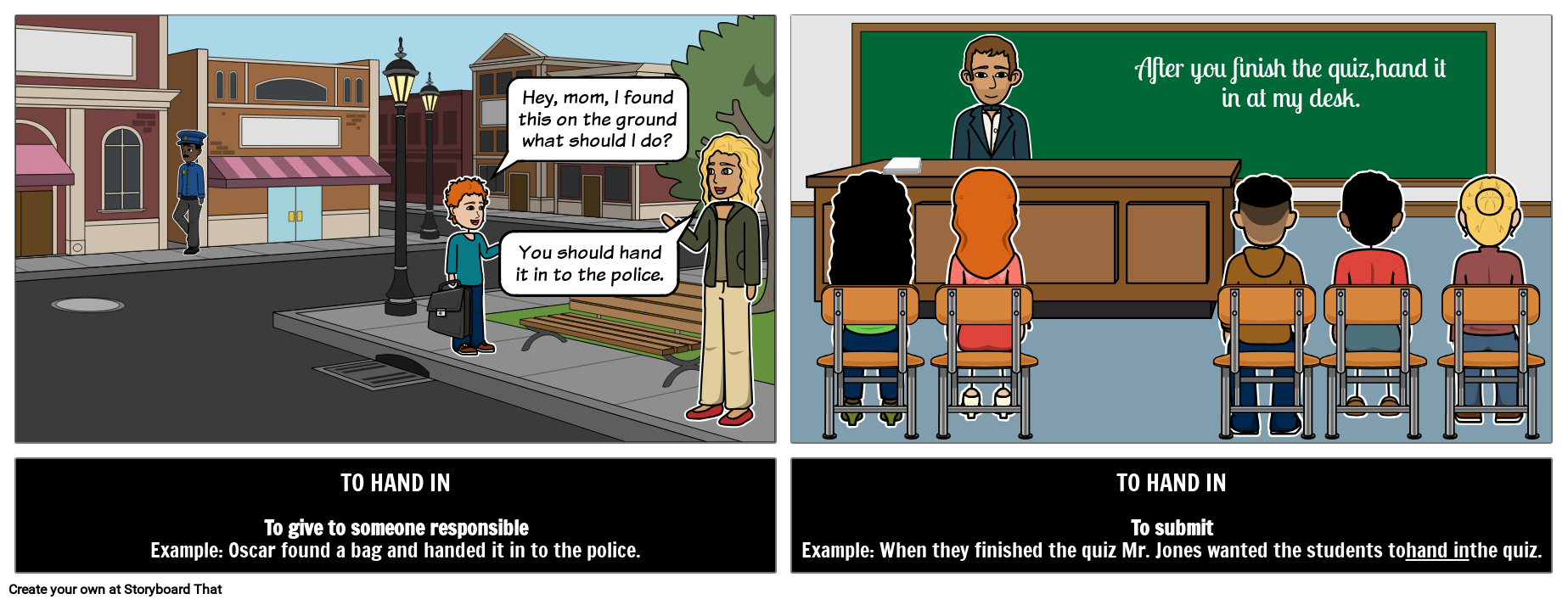 Using Storyboard That you can prepare a visual dictionary of phrasal verbs quickly and easily. Even better than that, have your students create their own phrasal verb visual definitions.