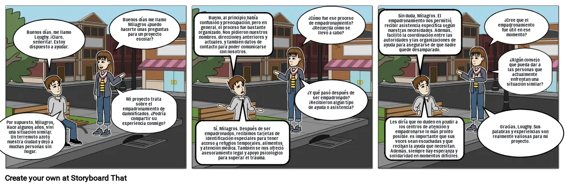 Por supuesto, Milagros. Hace algunos años, viví una situación similar. Un terremoto azotó nuestra ciudad y dejó a muchas personas sin hogar.