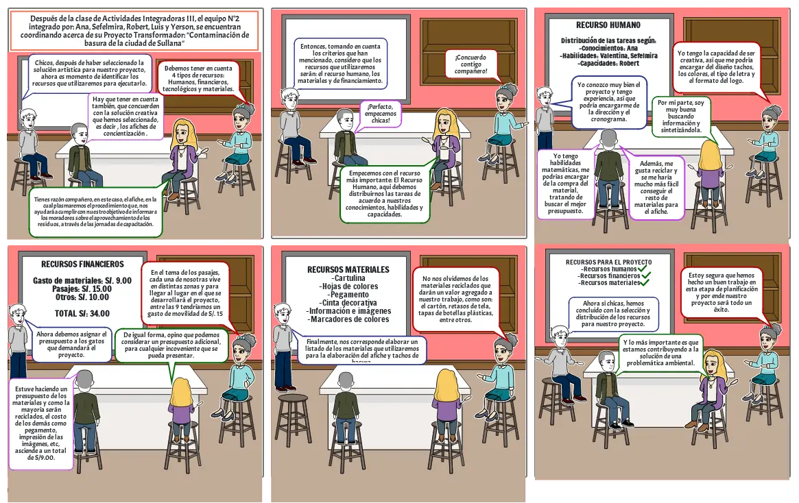 Después de la clase de Actividades Integradoras III, el equipo N°2 integrado por: Ana, Sefelmira, Robert, Luis y Yerson, se encuentran coordinando acerca de su Proyecto Transformador: "Contaminación de basura de la ciudad de Sullana"