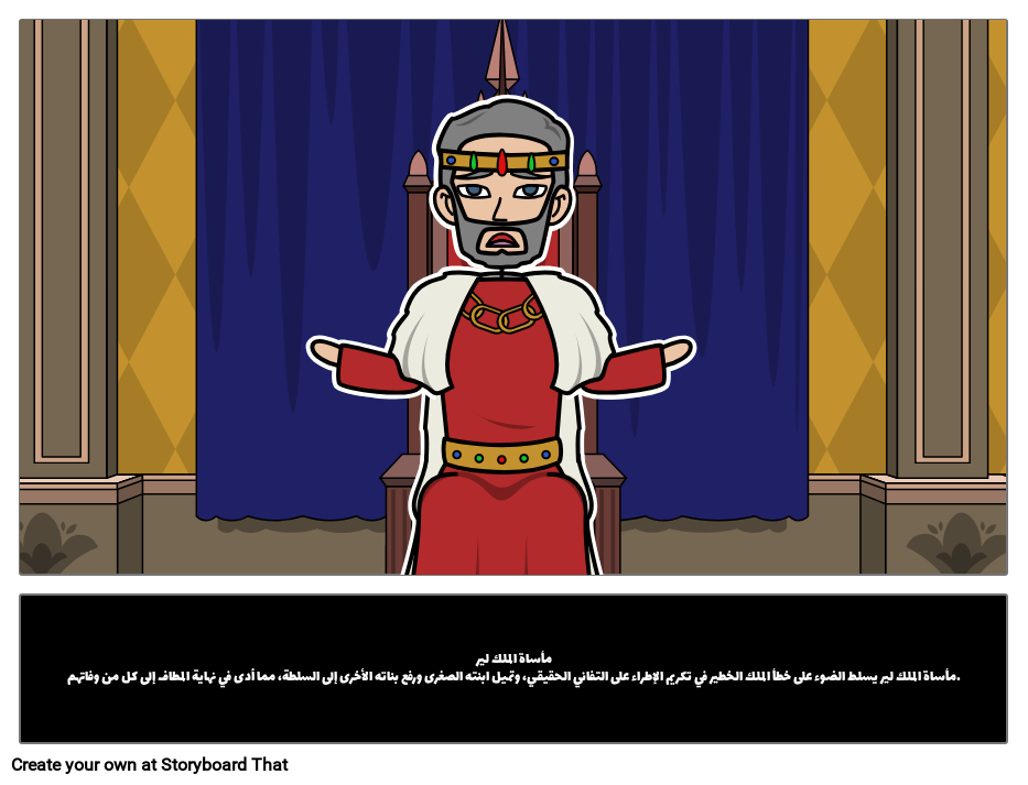 مأساة الملك لير مأساة الملك لير يسلط الضوء على خطأ الملك الخطير في تكريم الإطراء على التفاني الحقيقي، وتميل ابنته الصغرى ورفع بناته الأخرى إلى السلطة، مما أدى في نهاية المطاف إلى كل من وفاتهم.