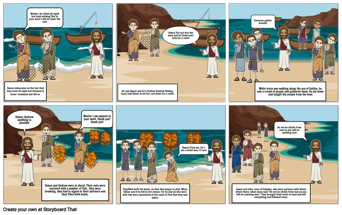 Simon and Andrew were in shock. Their nets were enclosed with a number of fish , they were breaking, they had to signal to their partners and they filled both boats.