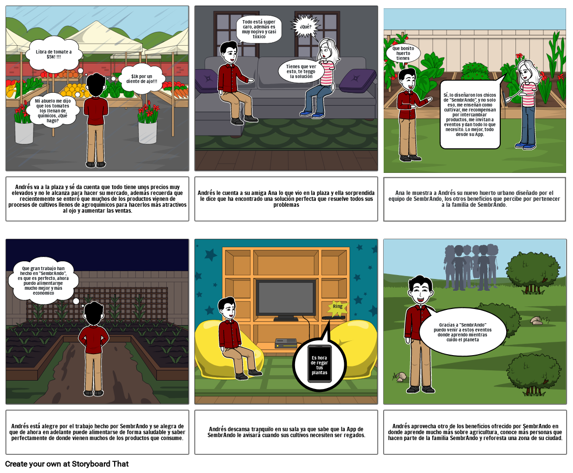 Andrés va a la plaza y sé da cuenta que todo tiene unos precios muy elevados y no le alcanza para hacer su mercado, además recuerda que recientemente se enteró que muchos de los productos vienen de procesos de cultivos llenos de agroquímicos para hacerlos más atractivos al ojo y aumentar las ventas.