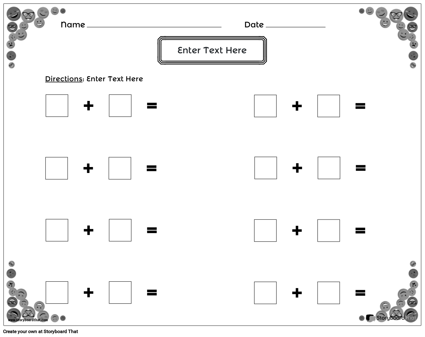 अतिरिक्त कार्यपत्रक अतिरिक्त तथ्यों और अधिक जटिल समीकरणों का अभ्यास करने के लिए सही उपकरण हैं। आसान प्रिंटिंग के लिए लैंडस्केप लेआउट, इमोजी थीम, ब्लैक एंड व्हाइट!
