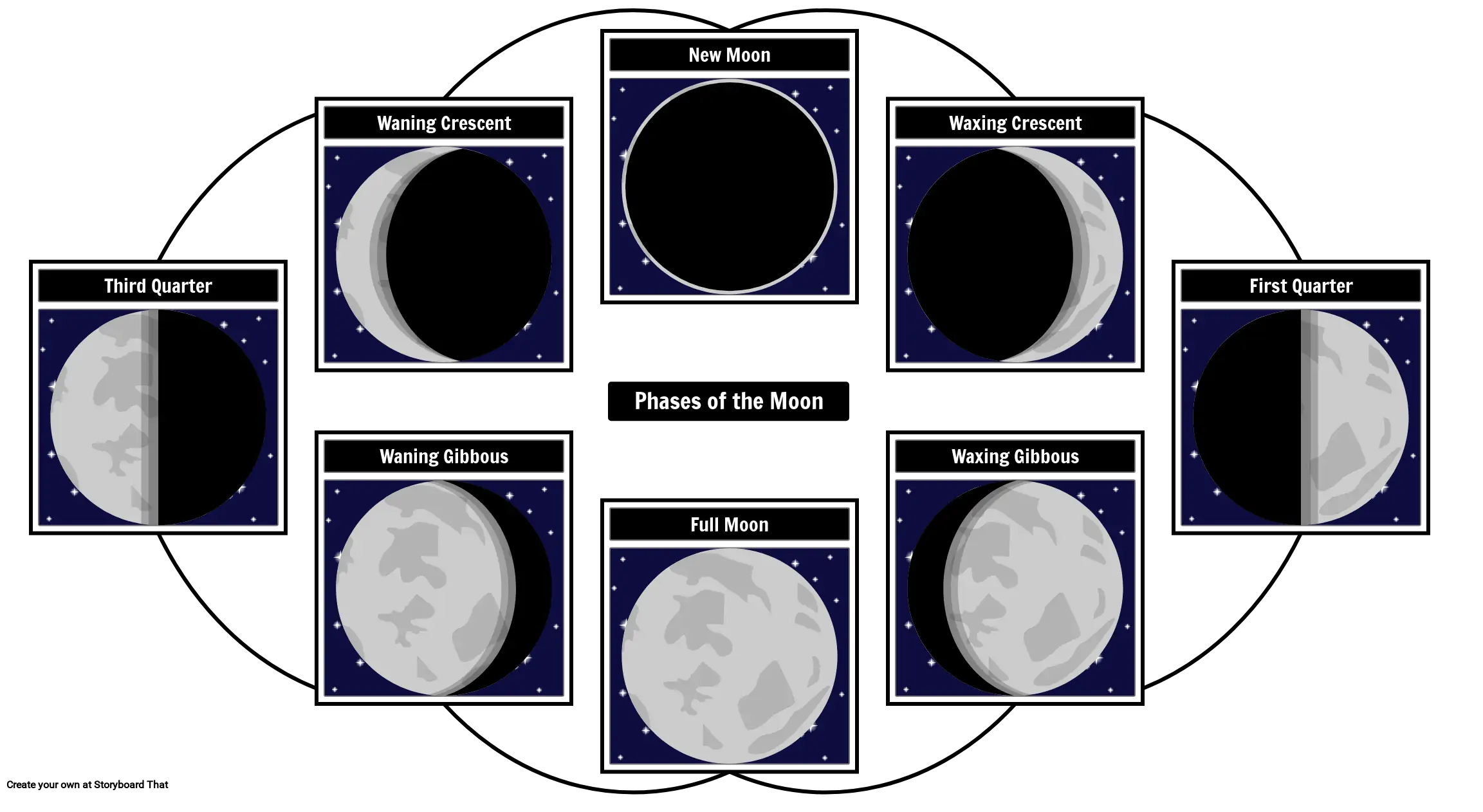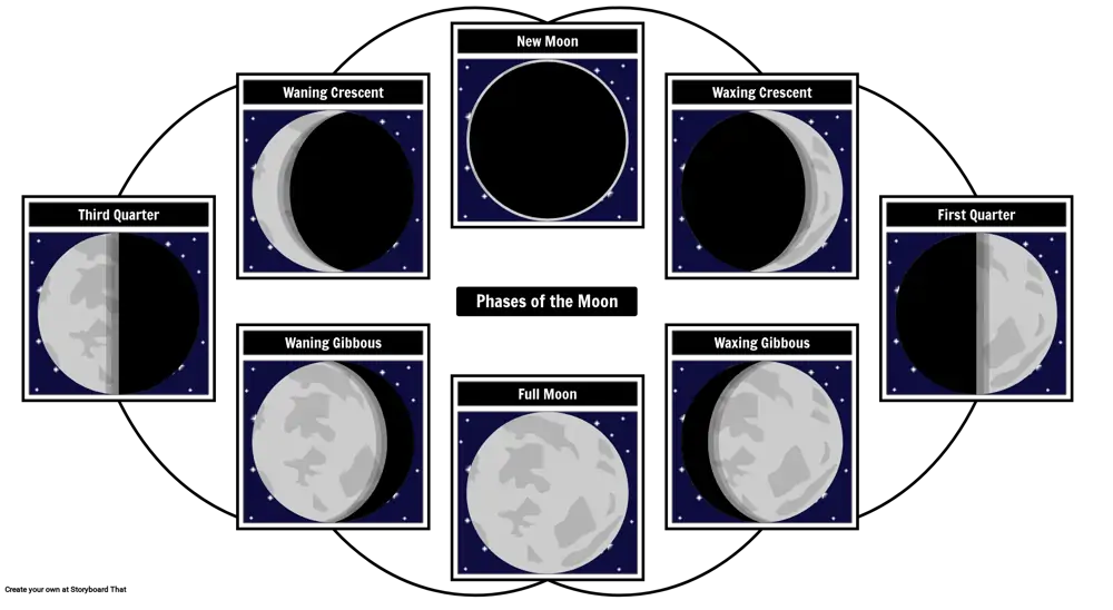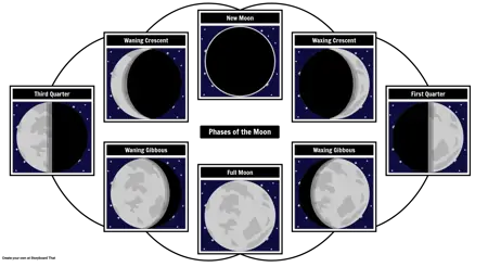 Naudokite ciklo diagramą arba apskritimo diagramą, kad iliustruotumėte mėnulio fazes mokslo ir astronomijos klasėse!
