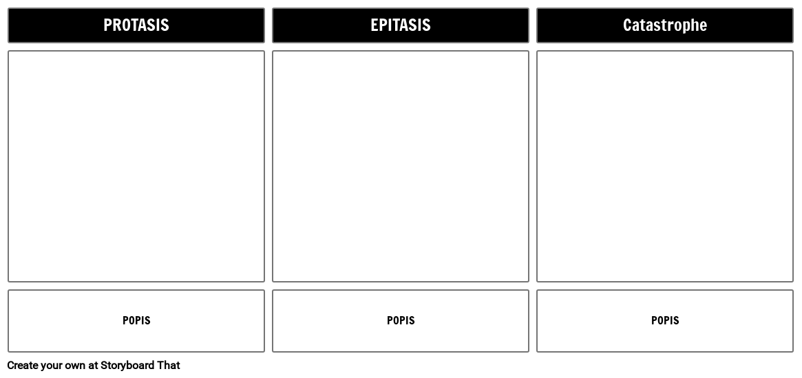Šablóna štruktúry 3 zákona Nechajte študentov, aby identifikovali protázu, epitázu a katastrofu hry a vykreslili ich pomocou Storyboard That.