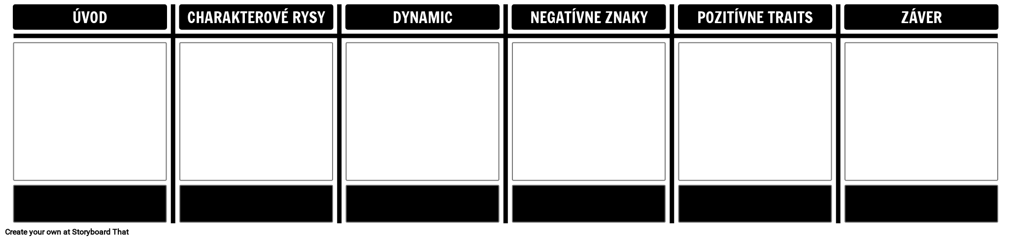 Šablóna storyboard pre antihero analýzu. Táto šablóna sa používa na sledovanie informácií o antihrdinoch v literatúre