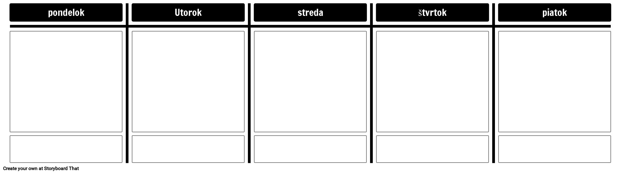 Šablóna pondelok až piatok pomocou rozloženia T-Chart. Pridajte ďalšie dve bunky na celý týždeň!