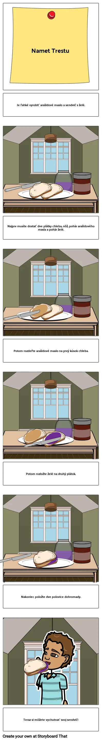 • Najprv musíte dostať dve plátky chleba, nôž, pohár arašidového masla a pohár želé.