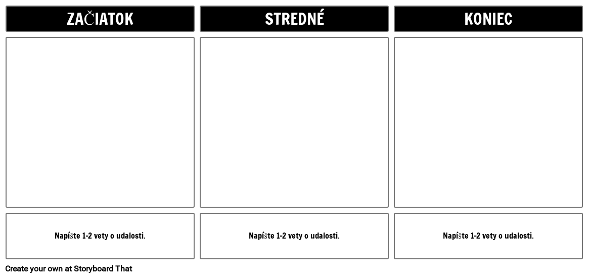 Súhrnná šablóna BME. Použite ako nástroj na zhrnutie alebo plánovanie príbehu. Skopírujte na účet Storyboard That učiteľa a skonvertujte na šablónu pre úlohu.