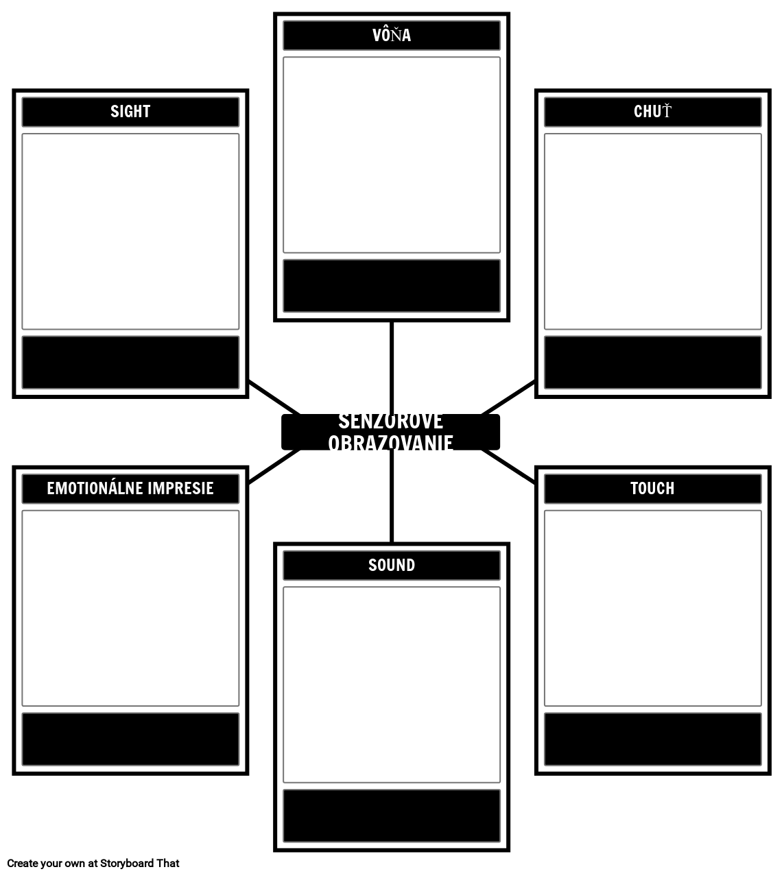 Šablóna snímok snímok - Túto šablónu použite v Storyboard That na vykreslenie zmyslových snímok z pamäte alebo z básne.