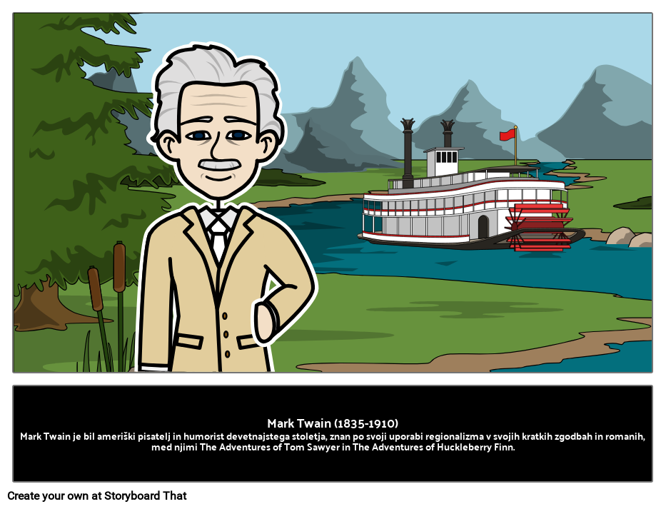 Mark Twain je bil ameriški pisatelj in humorist devetnajstega stoletja, znan po svoji uporabi regionalizma v svojih kratkih zgodbah in romanih, med njimi The Adventures of Tom Sawyer in The Adventures of Huckleberry Finn.