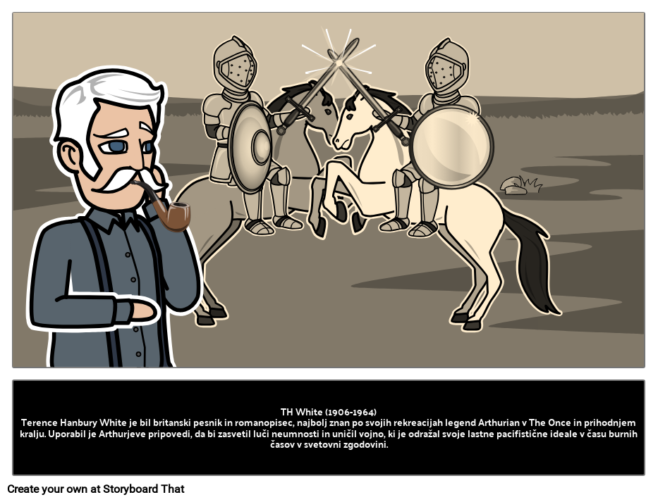 Terence Hanbury White je bil britanski pesnik in romanopisec, najbolj znan po svojih rekreacijah legend Arthurian v The Once in prihodnjem kralju. Uporabil je Arthurjeve pripovedi, da bi zasvetil luči neumnosti in uničil vojno, ki je odražal svoje lastne pacifistične ideale v času burnih časov v svetovni zgodovini.