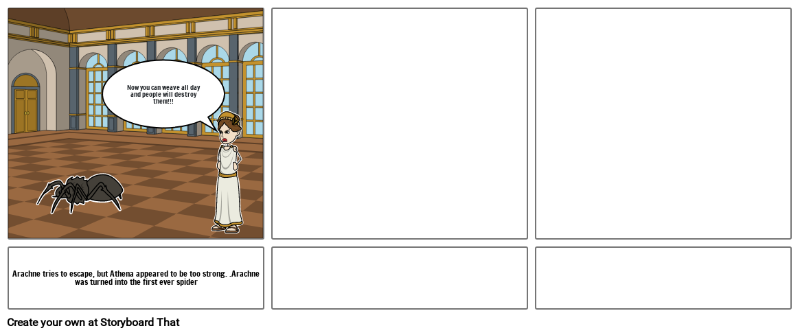 Arachne tries to escape, but Athena appeared to be too strong. .Arachne was turned into the first ever spider