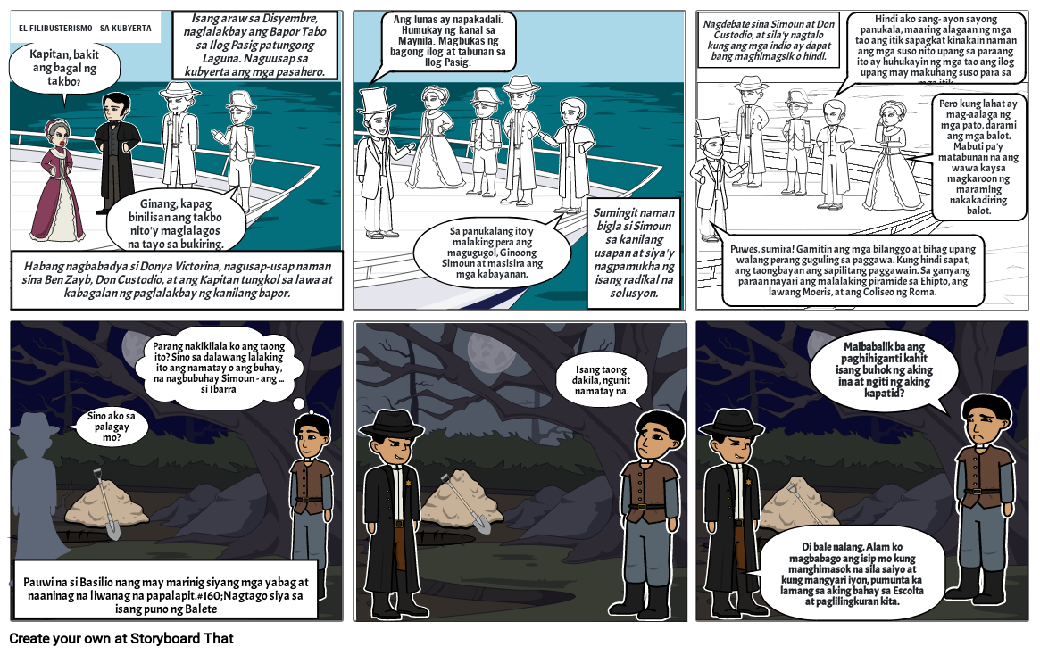 Nagdebate sina Simoun at Don Custodio, at sila'y nagtalo kung ang mga indio ay dapat bang maghimagsik o hindi.