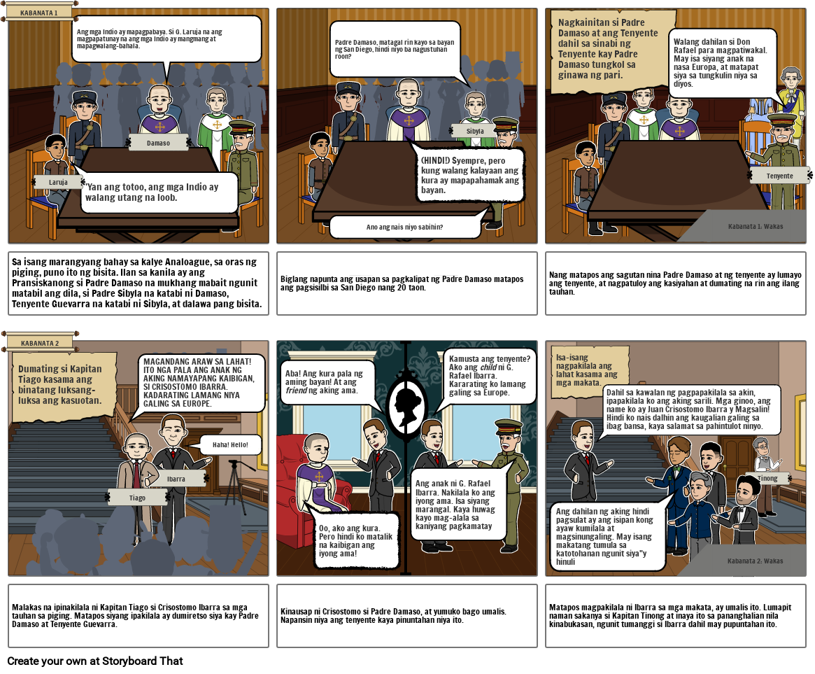 Dahil sa kawalan ng pagpapakilala sa akin, ipapakilala ko ang aking sarili. Mga ginoo, ang name ko ay Juan Crisostomo Ibarra y Magsalin! Hindi ko nais dalhin ang kaugalian galing sa ibag bansa, kaya salamat sa pahintulot ninyo.