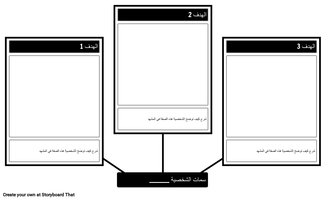 قالب سمة الحرف في خريطة العنكبوت. حدد ثلاث سمات شخصية وتصورها في لوحة العمل.