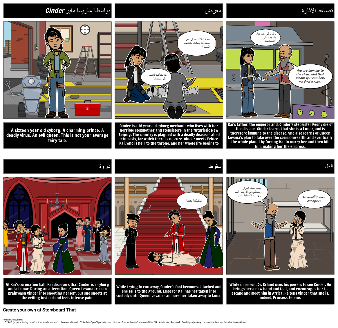 يمكن للطلاب إنشاء مخطط مؤامرة مرئي لـ Cinder بواسطة Marissa Meyer ، مع تسليط الضوء على اللحظات الرئيسية من القصة.