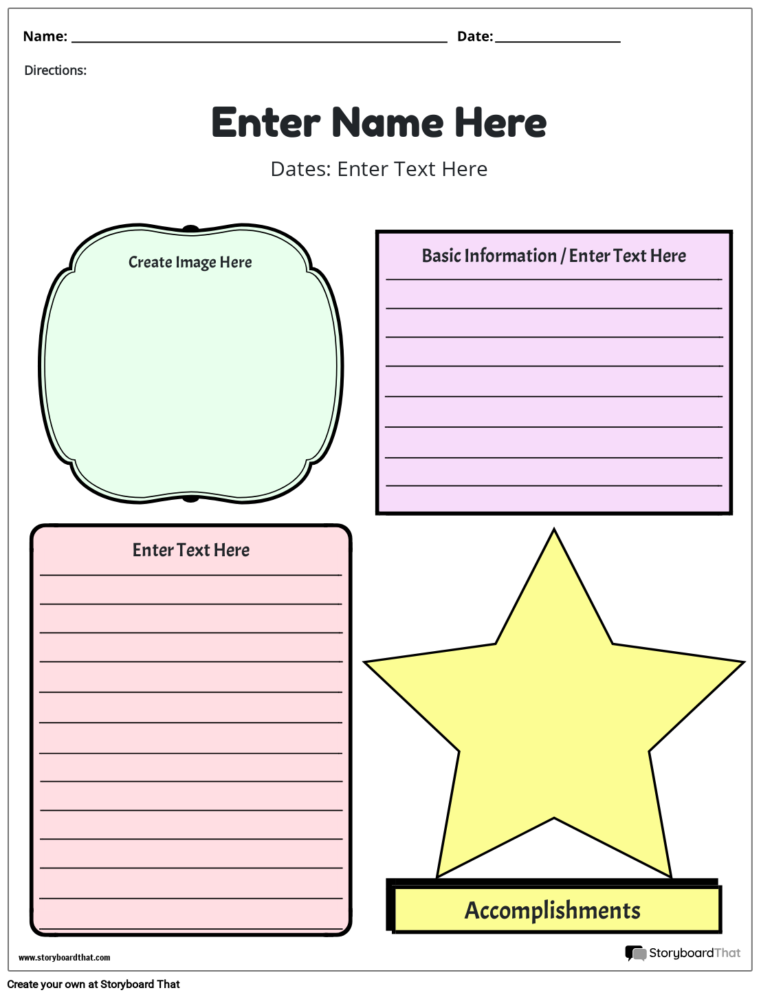 Създайте графичен организатор на биография! | Работни листове за биография | Шаблони на работни листове за исторически фигури за час по история