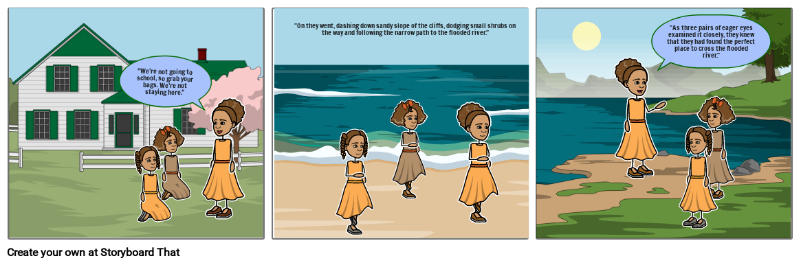 "As three pairs of eager eyes examined it closely, they knew that they had found the perfect place to cross the flooded river."