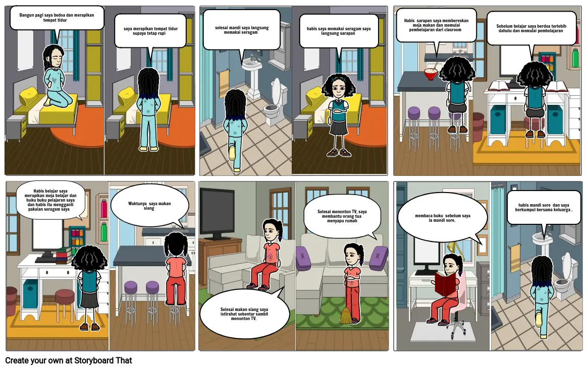 Habis belajar saya merapikan meja belajar dan buku buku pelajaran saya dan habis itu mengganti pakaian seragam saya