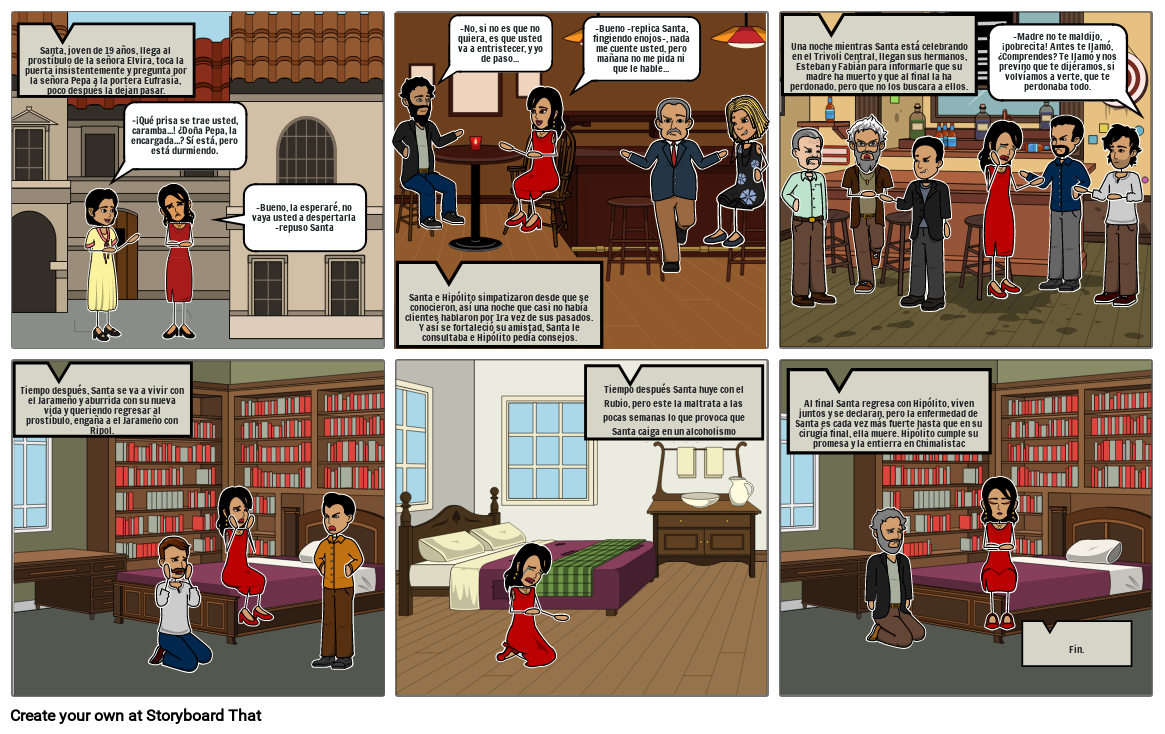 Santa e Hipólito simpatizaron desde que se conocieron, así una noche que casi no había clientes hablaron por 1ra vez de sus pasados. Y así se fortaleció su amistad, Santa le consultaba e Hipólito pedía consejos.