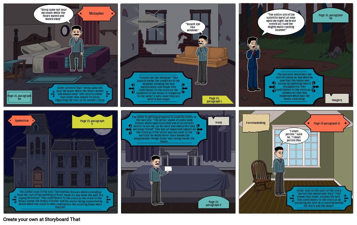 Usher proverb that "sleep came not near my couch-while the hours waned and waned away" this clearly shows that Usher was unable to sleep impacting the text as he couldn't sleep