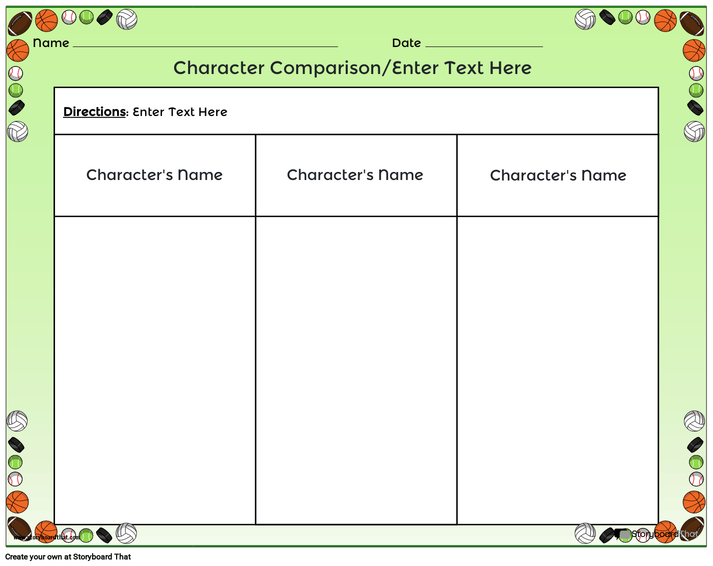 तीन वर्णों के लिए खेल थीम पर आधारित चरित्र तुलना चार्ट।