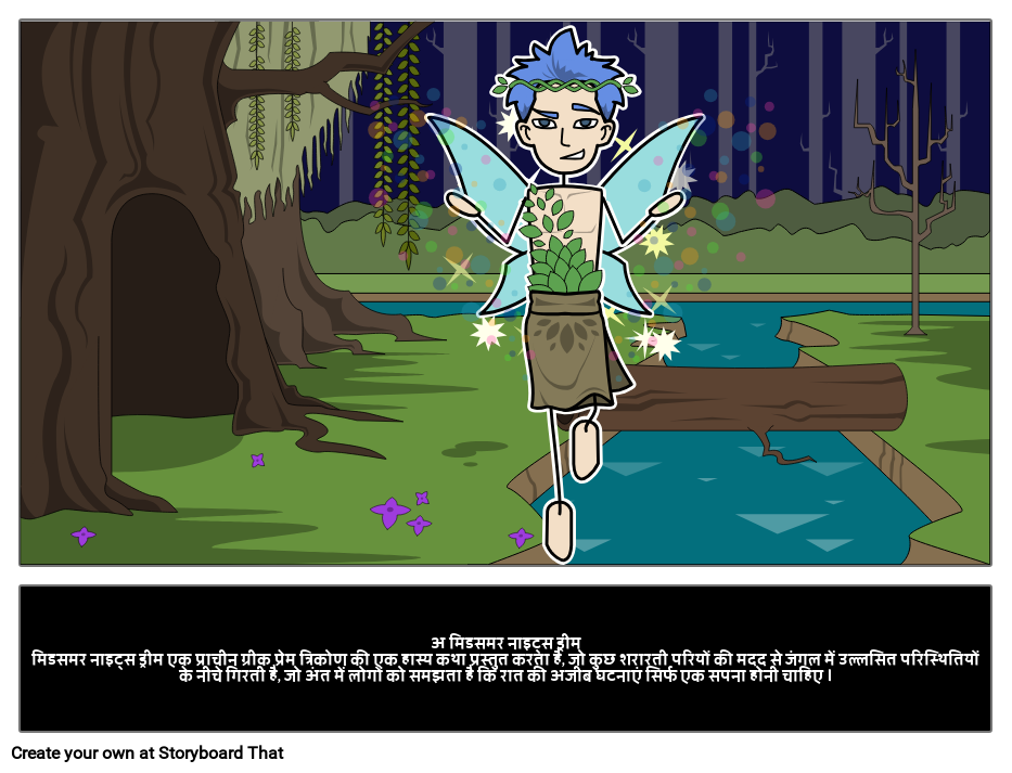 अ मिडसमर नाइट्स ड्रीममिडसमर नाइट्स ड्रीम एक प्राचीन ग्रीक प्रेम त्रिकोण की एक हास्य कथा प्रस्तुत करता है, जो कुछ शरारती परियों की मदद से जंगल में उल्लसित परिस्थितियों के नीचे गिरती है, जो अंत में लोगों को समझता है कि रात की अजीब घटनाएं सिर्फ एक सपना होनी चाहिए ।