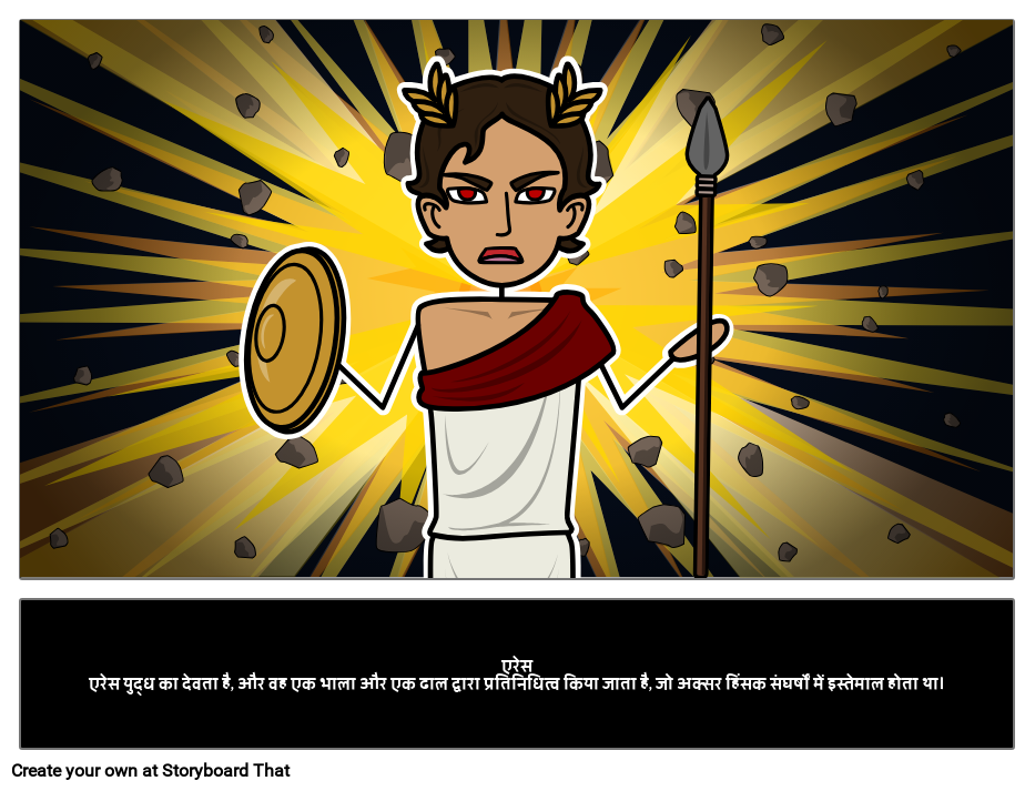 एरेस एरेस युद्ध का देवता है, और वह एक भाला और एक ढाल द्वारा प्रतिनिधित्व किया जाता है, जो अक्सर हिंसक संघर्षों में इस्तेमाल होता था।