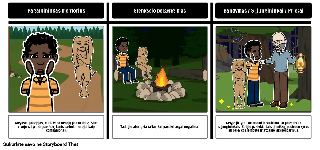 Atvyksta padėjėjas, kuris veda herojų per kelionę. Šiuo atveju tai yra drąsus šuo, kuris padeda herojui kaip kompanionas.