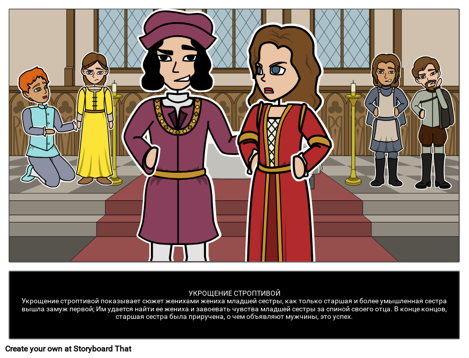 УКРОЩЕНИЕ СТРОПТИВОЙУкрощение строптивой показывает сюжет женихами жениха младшей сестры, как только старшая и более умышленная сестра вышла замуж первой; Им удается найти ее жениха и завоевать чувства младшей сестры за спиной своего отца. В конце концов, старшая сестра была приручена, о чем объявляют мужчины, это успех.