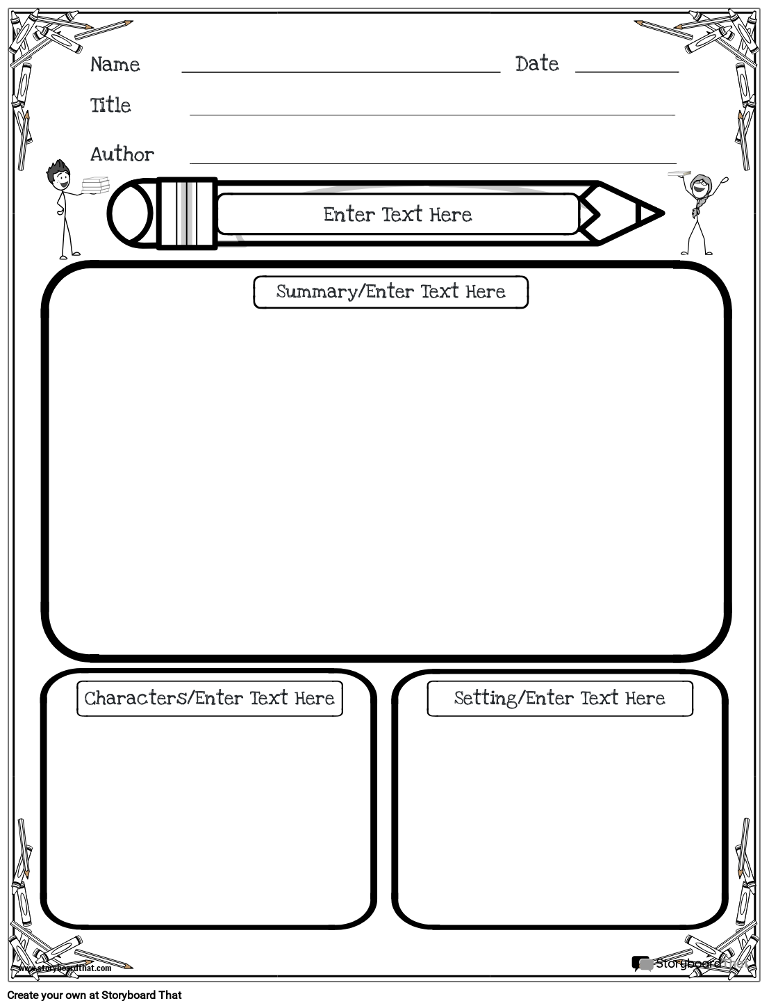 Book Report Planner Portrait BW 1