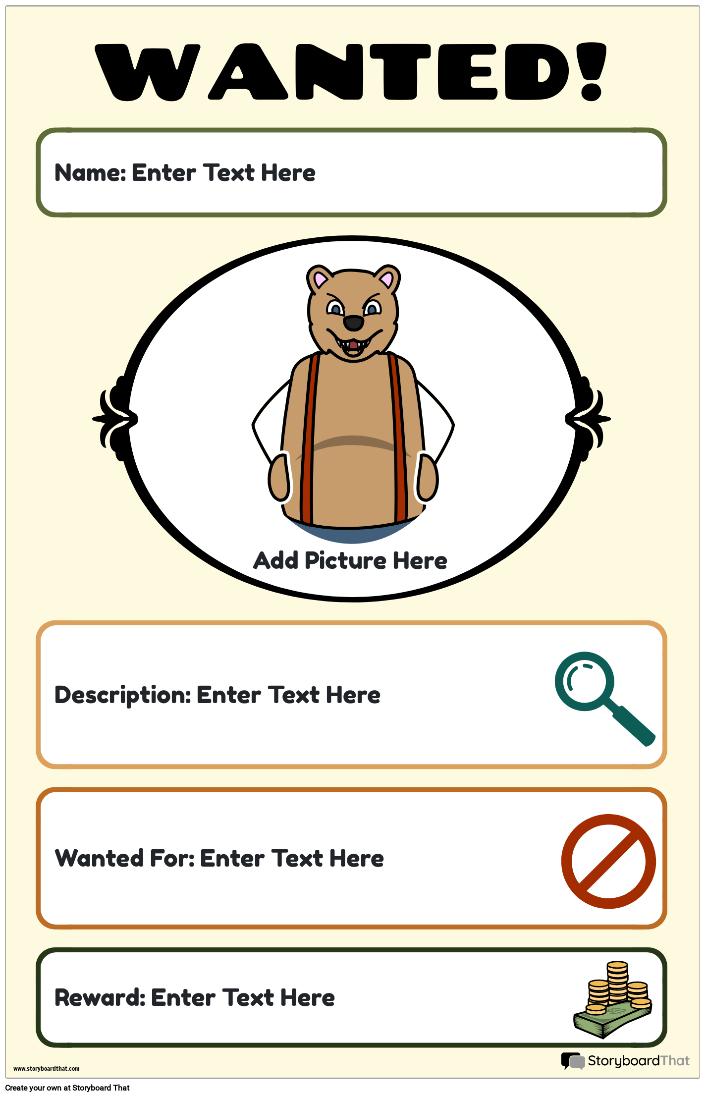 Iskana predloga plakata | Ustvarite želene plakate po meri za zabavne projekte v razredu! Primer uporablja naš smešni antropomorfni lik medveda!