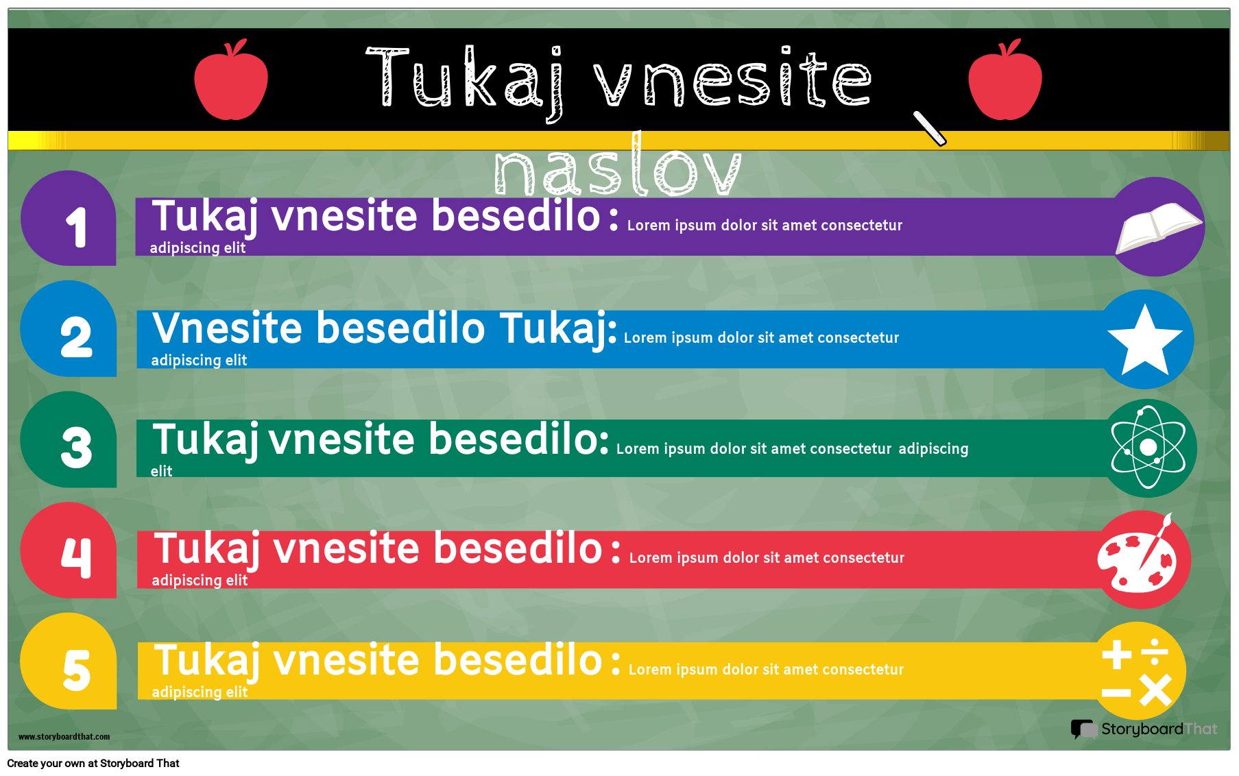 Učitelji in učenci lahko uredijo to infografiko seznama in dodajo korake v procesu ali opravila, ki jih je treba opraviti, da prejmejo nagrado. Ta barvita predloga je popolnoma prilagodljiva in lahko vključuje besedilo in slike, ki se nanašajo na temo. Ta infografski plakat lahko natisnete in postavite na vidno mesto kot lep opomnik v učilnici ali pa ga prenesete in prikažete digitalno.