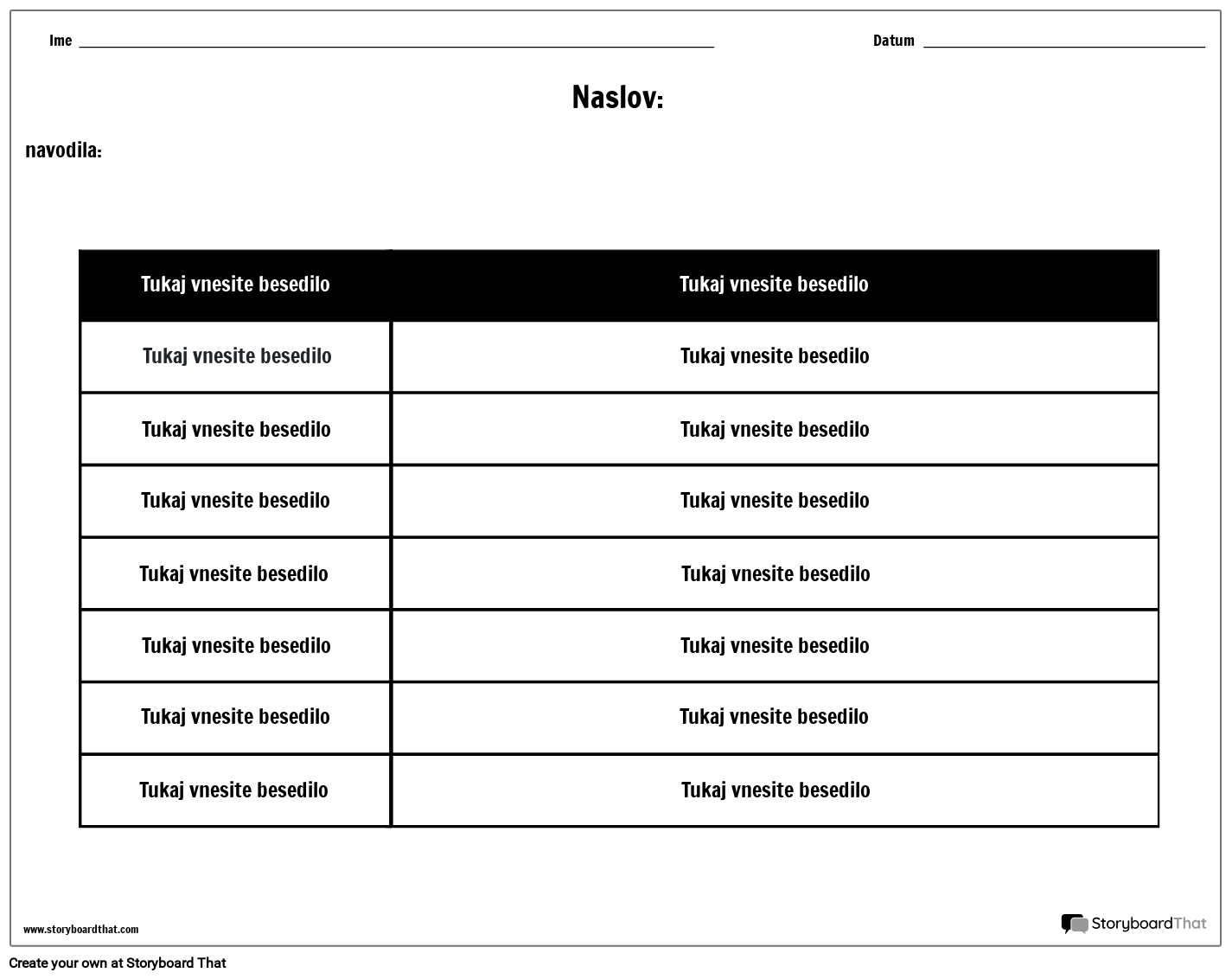 Tabela – 2 Stolpca, 7 Vrstic, Različica 2