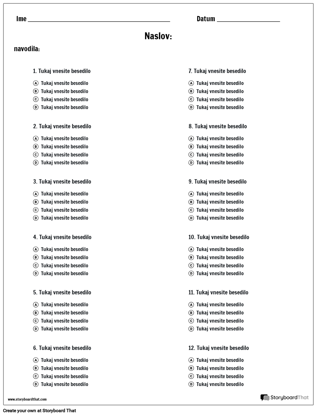 Predloga z več možnostmi – dva stolpca | Naredite kvize z več izbirami za učence