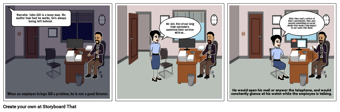He would open his mail or answer the telephone, and would constantly glance at his watch while the employee is talking.
