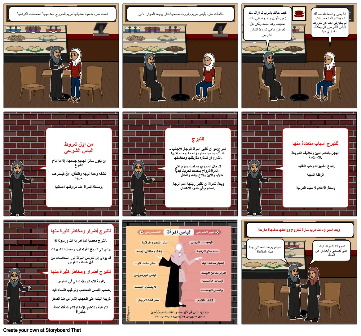 :تفاجأت سارة بلباس مريم وقررت نصحها فدار بينهما الحوار الاتي