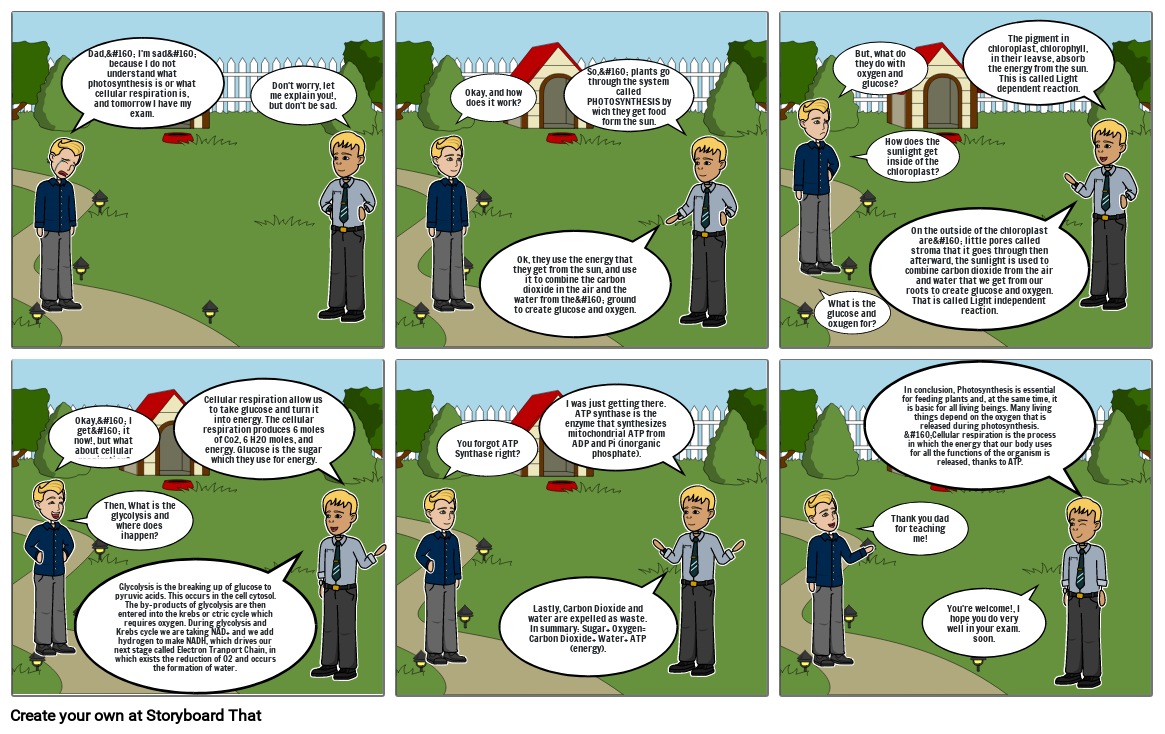 Dad, I'm sad because I do not understand what photosynthesis is or what cellular respiration is, and tomorrow I have my exam.