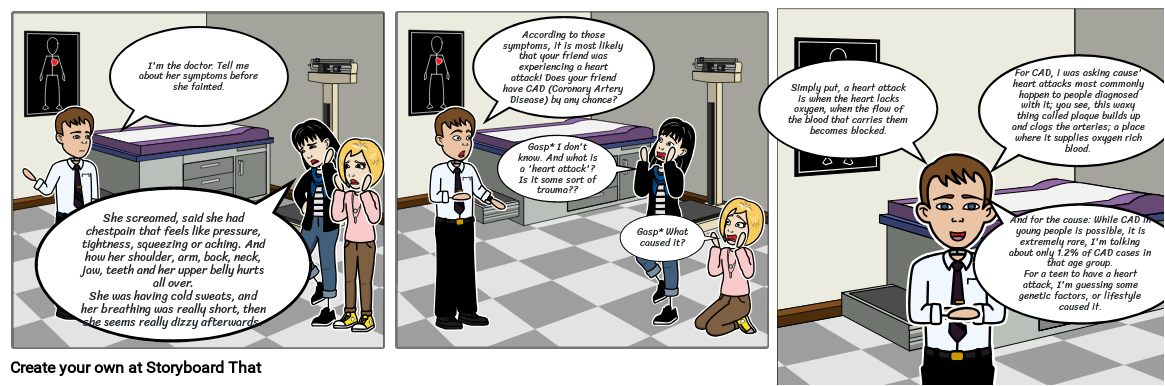 For CAD, i was asking cause' heart attacks most commonly happen to people diagnosed with it; you see, this waxy thing called plaque builds up and clogs the arteries; a place where it supplies oxygen rich blood.